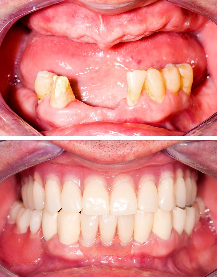 Es ist bekannt, dass fehlende Zähne Probleme beim Essen und/oder Sprechen verursachen, und daher sind partielle (ein einzelne oder eine kleine Anzahl fehlender Zähne) oder vollständige (ein ganzer Satz) praktische und effektive Lösungen für Patienten, die solche Schwierigkeiten haben.